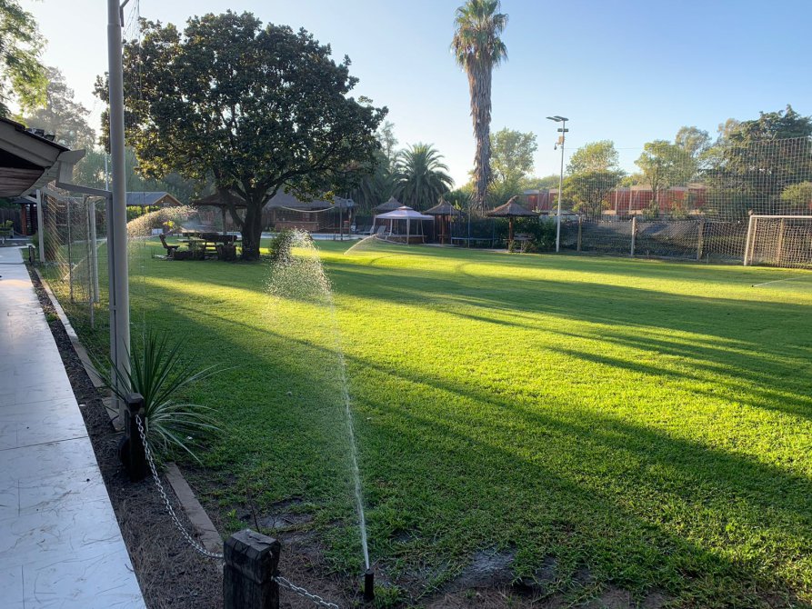 ESPACIO VERDE CON JUEGOS DE RECREACIÓN Y CANCHAS – RIEGO POR ASPERSORES