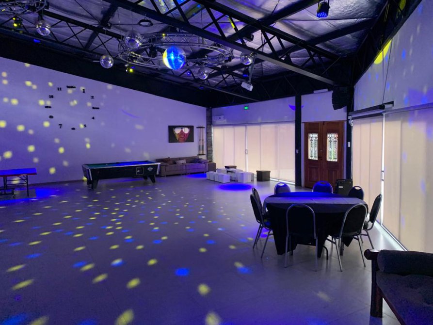 SECTOR SALON: ESPACIO TIPO BOLICHE CON LUCES, MAQUINA DE HUMO, SISTEMA DE SONIDO, LASER, BARRA DE DJ, BARRA DE TRAGOS EQUIPADA